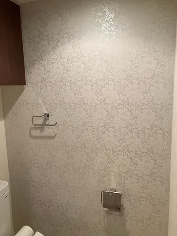 仙台市内でトイレの壁紙張替え カタログからお客様に選んでいただいた壁紙をアクセントクロス張替え 予想以上の出来映えに驚かれておりました。