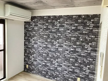 仙台市内の賃貸マンションで内装リフォーム工事 居室の壁面にレンガ柄のアクセントクロスで男性の入居を意識した内装に仕上げて行きます。