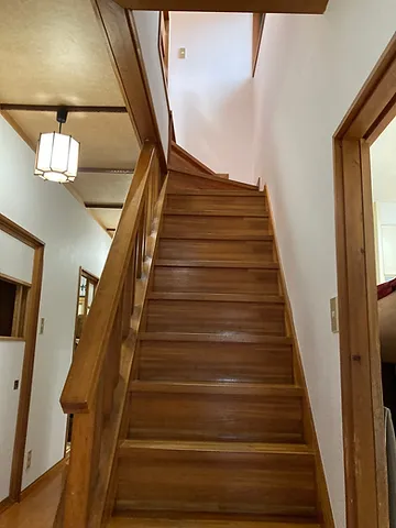 仙台市内で階段ホールのクロス張替え工事 何となく暗かった階段ホールが明るくキレイに仕上がりました。