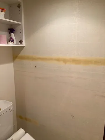 仙台市内でトイレの壁紙張替え 壁のひび割れを補修してパテ処理、乾燥待ちの状態です。