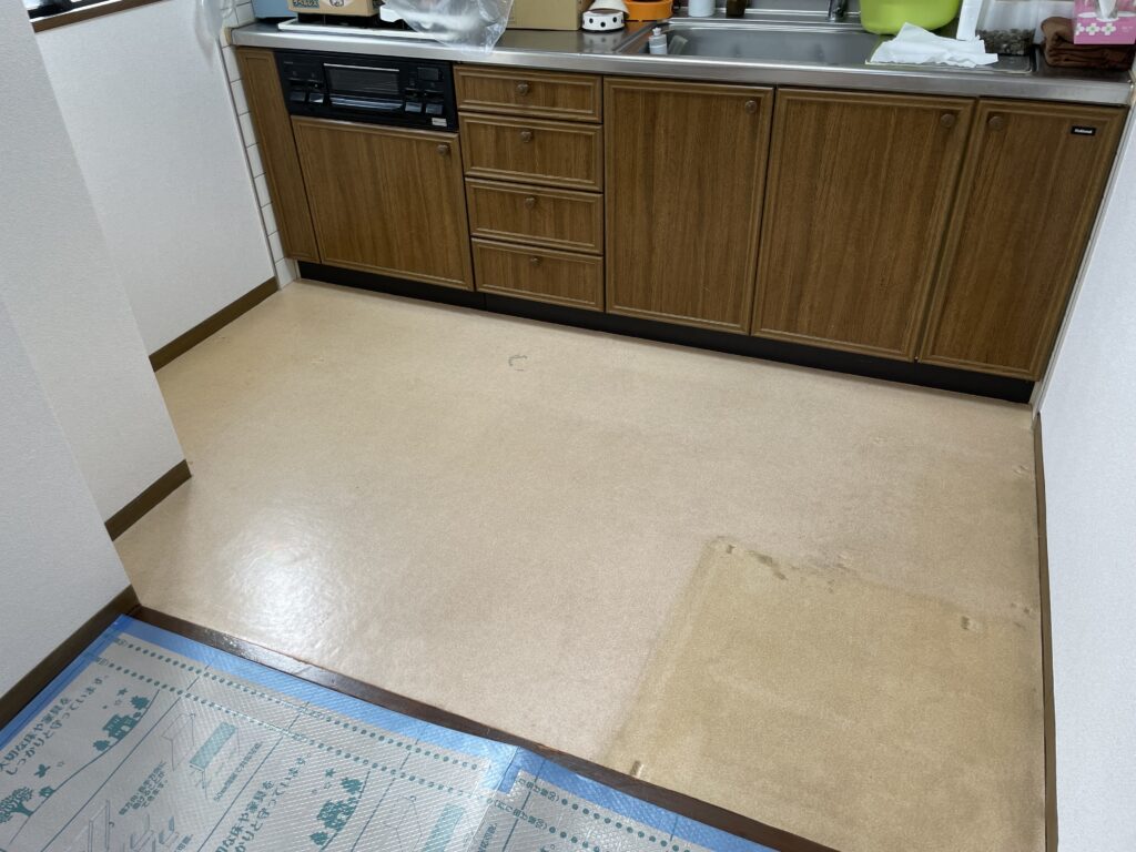 仙台市青葉区のマンションでキッチンの床張替え工事のご依頼です